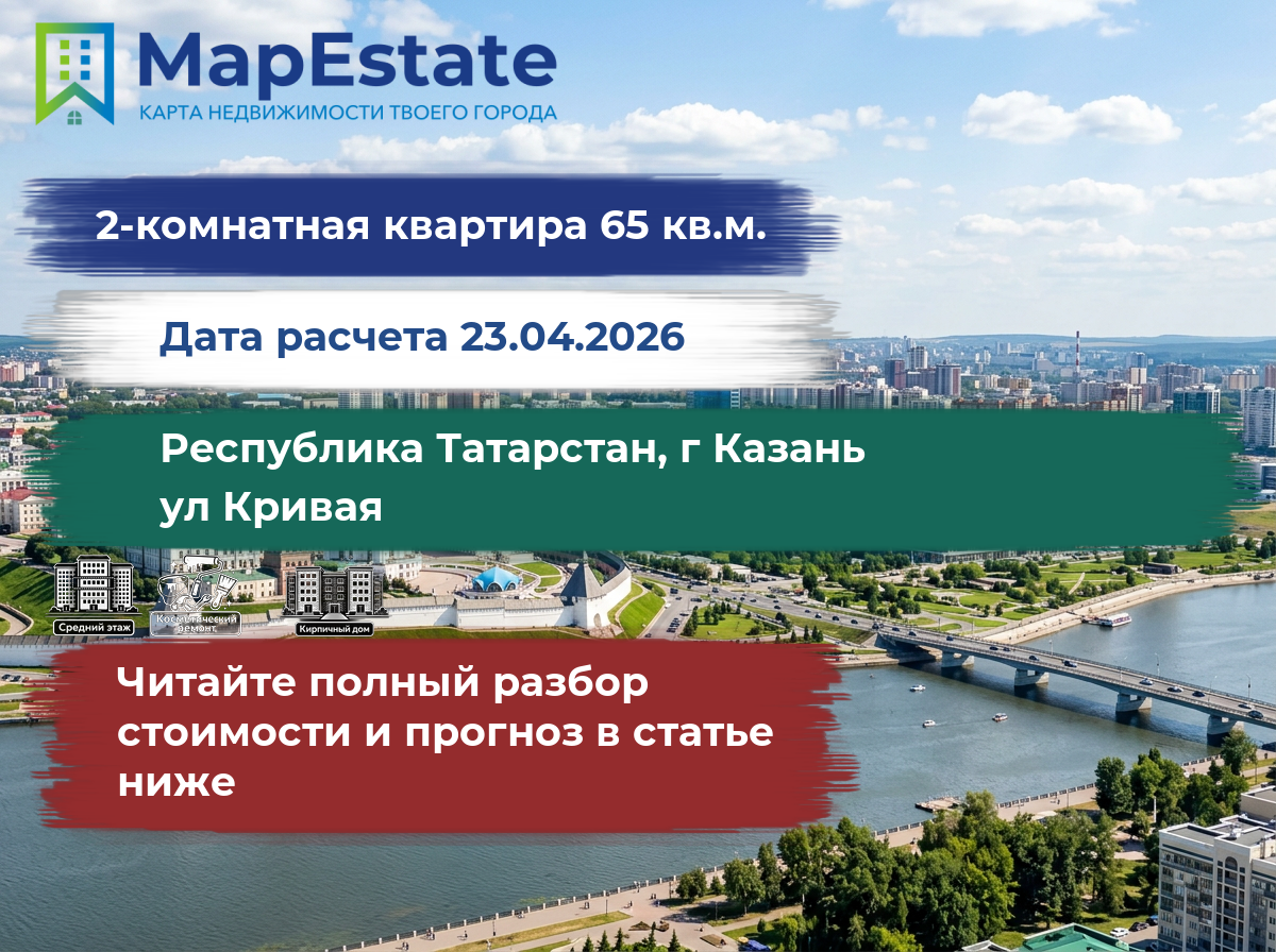 Сколько стоит квартира 65 м² в республика татарстан, г казань, ул кривая?