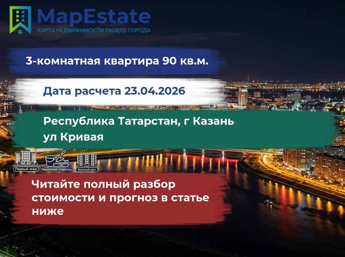 Сколько стоит квартира 90 м² в республика татарстан, г казань, ул кривая?