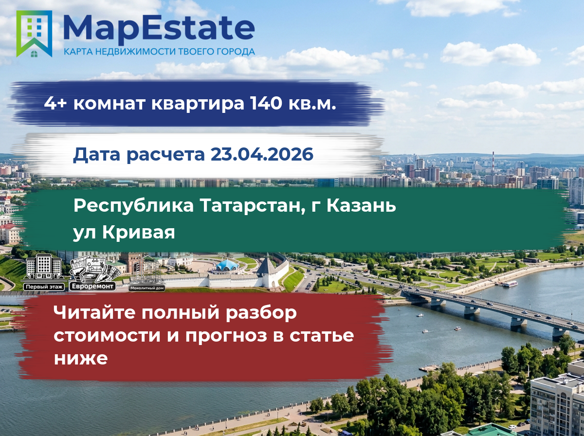 Сколько стоит квартира 140 м² в республика татарстан, г казань, ул кривая?