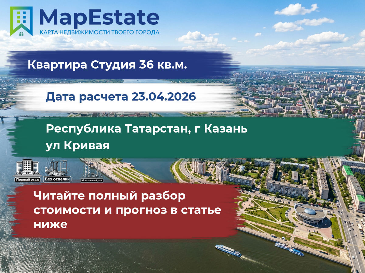 Сколько стоит квартира 36 м² в республика татарстан, г казань, ул кривая?