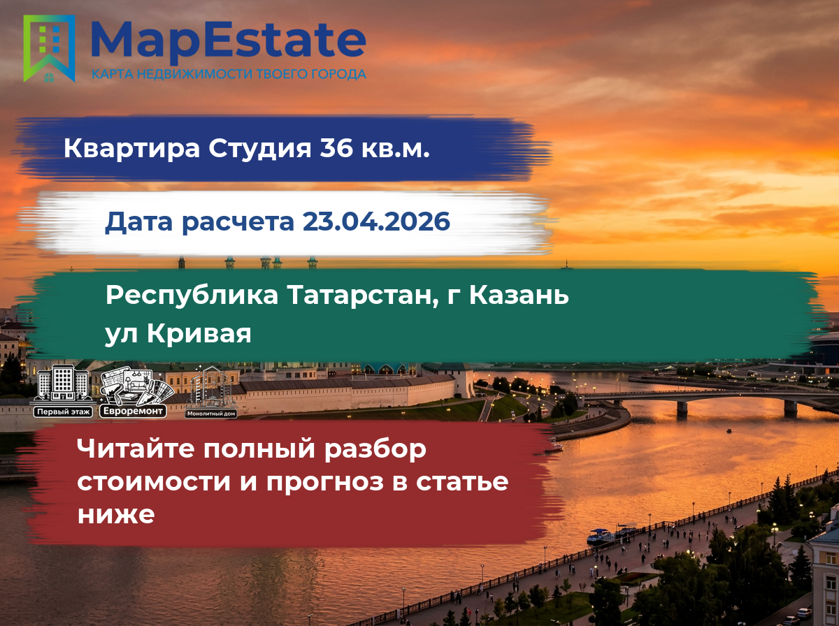Сколько стоит квартира 36 м² в республика татарстан, г казань, ул кривая?