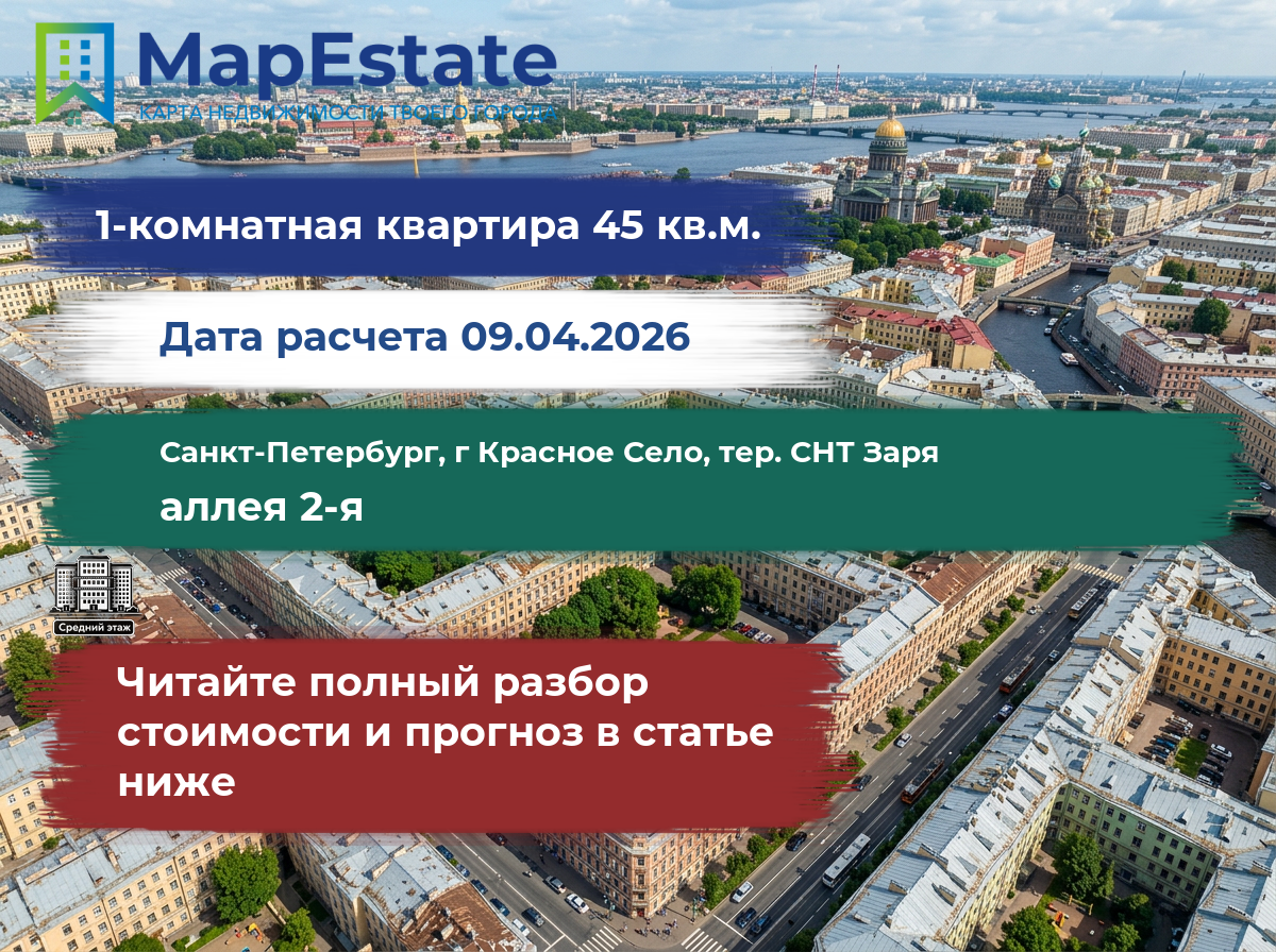 Сколько стоит квартира 45 м² в санкт-петербург, г красное село, тер. снт заря, аллея 2-я?