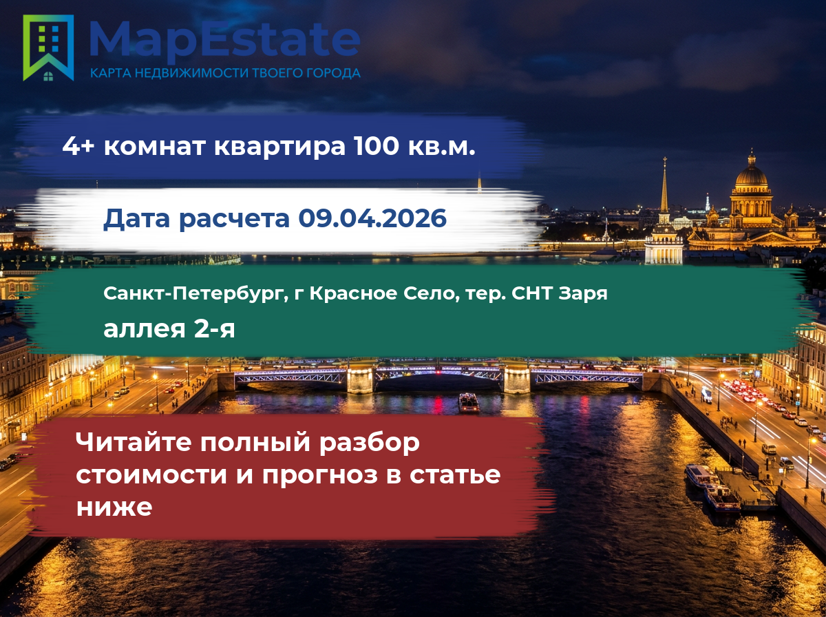 Сколько стоит квартира 100 м² в санкт-петербург, г красное село, тер. снт заря, аллея 2-я?