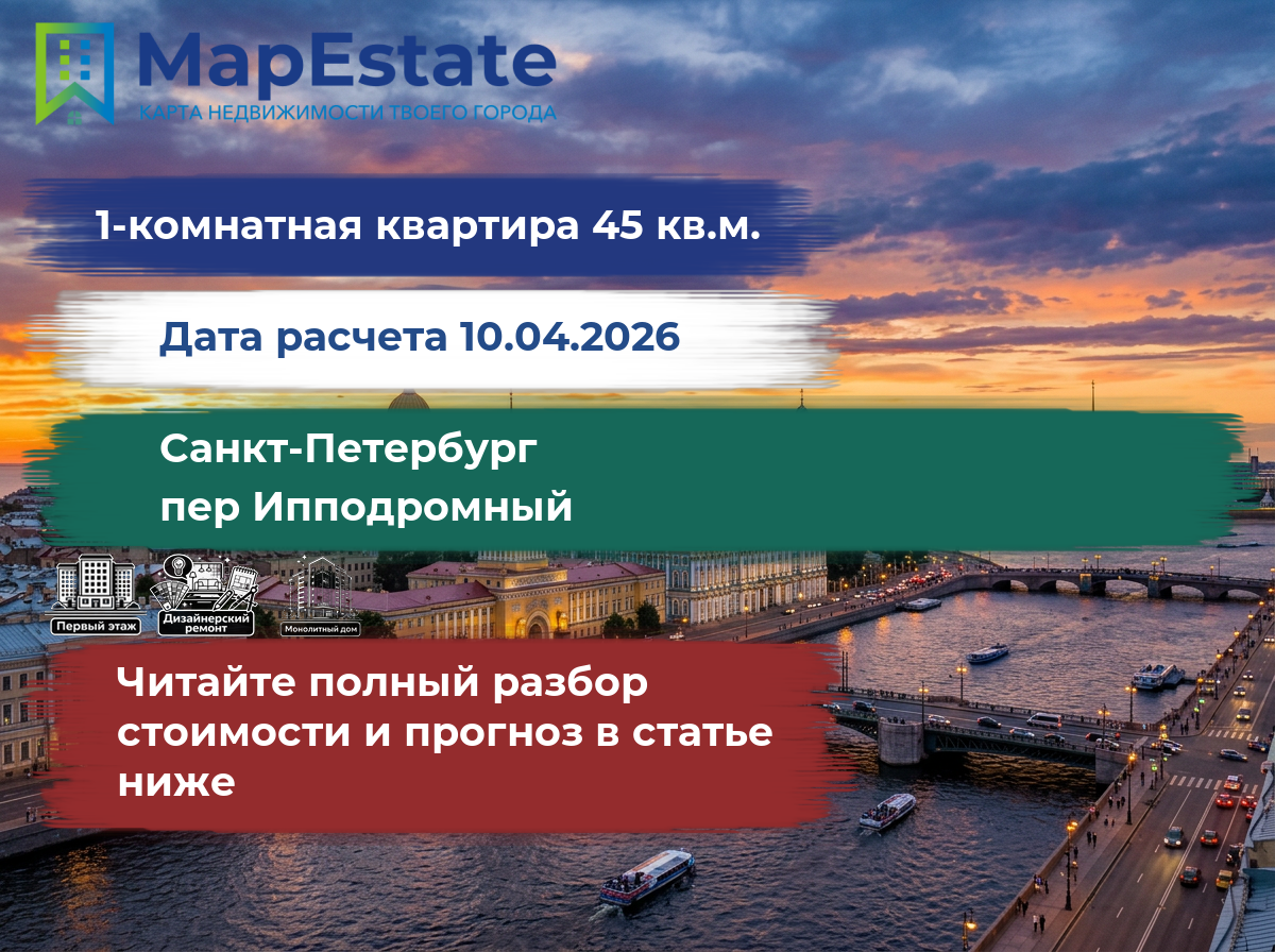 Сколько стоит квартира 45 м² в санкт-петербург, пер ипподромный?