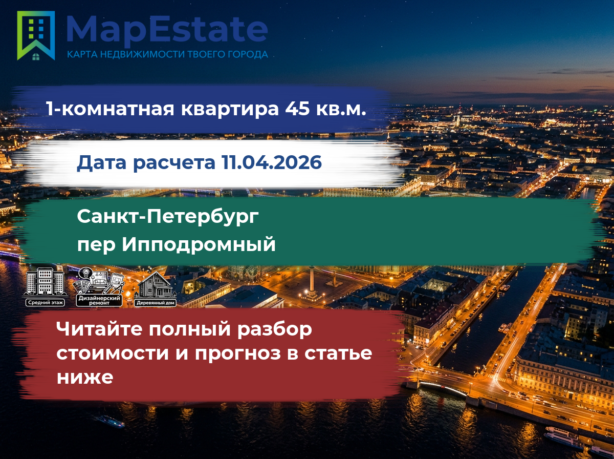Сколько стоит квартира 45 м² в санкт-петербург, пер ипподромный?