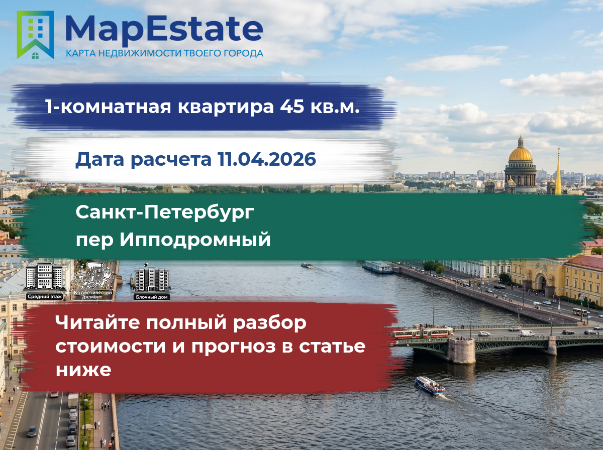 Сколько стоит квартира 45 м² в санкт-петербург, пер ипподромный?