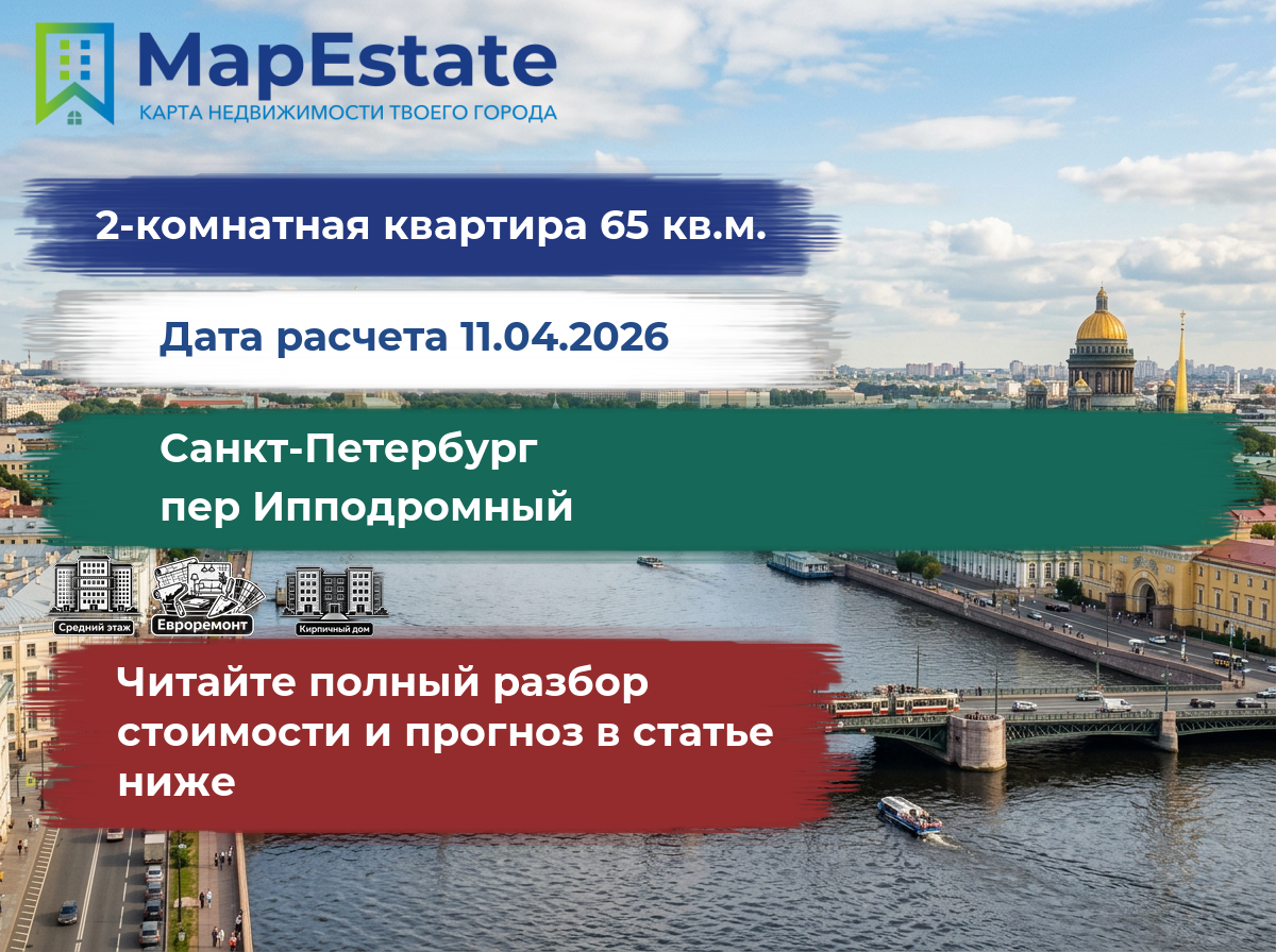 Сколько стоит квартира 65 м² в санкт-петербург, пер ипподромный?