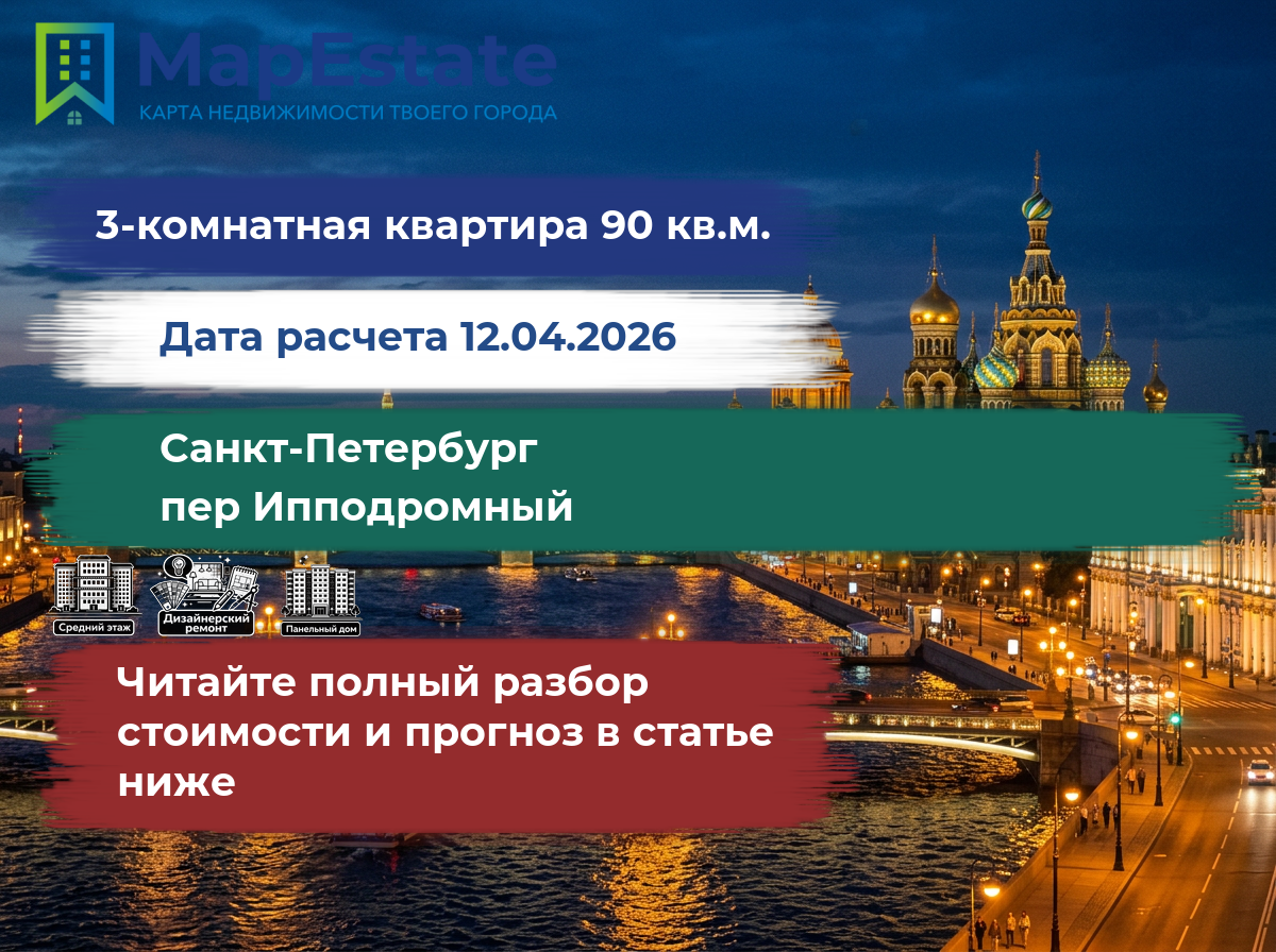 Сколько стоит квартира 90 м² в санкт-петербург, пер ипподромный?