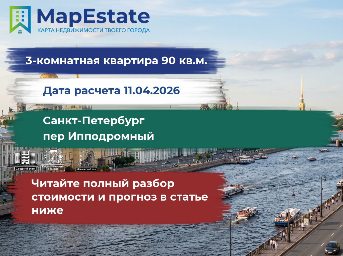 Сколько стоит квартира 90 м² в санкт-петербург, пер ипподромный?