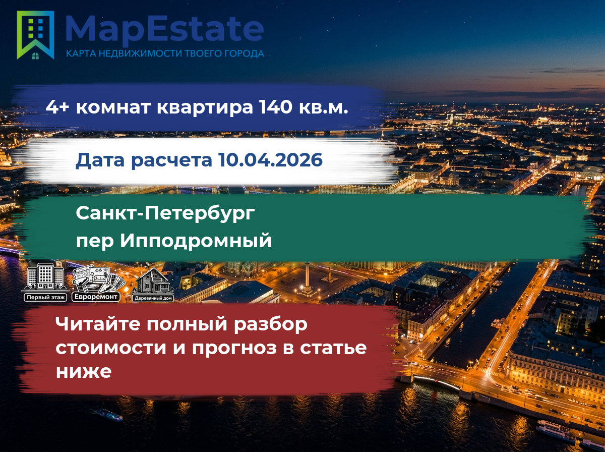 Сколько стоит квартира 140 м² в санкт-петербург, пер ипподромный?