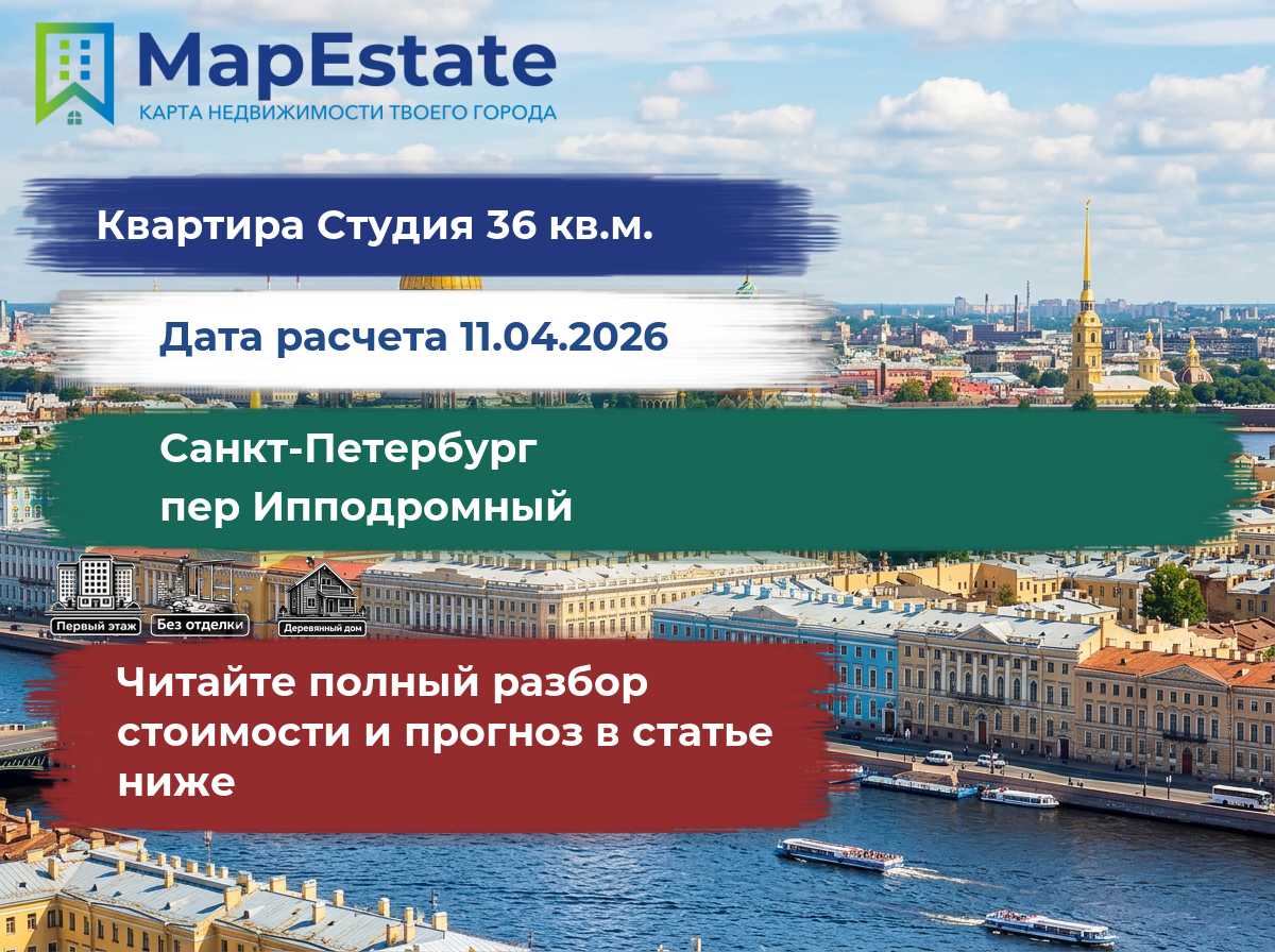 Сколько стоит квартира 36 м² в санкт-петербург, пер ипподромный?