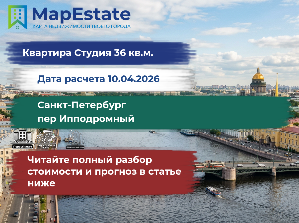 Сколько стоит квартира 36 м² в санкт-петербург, пер ипподромный?