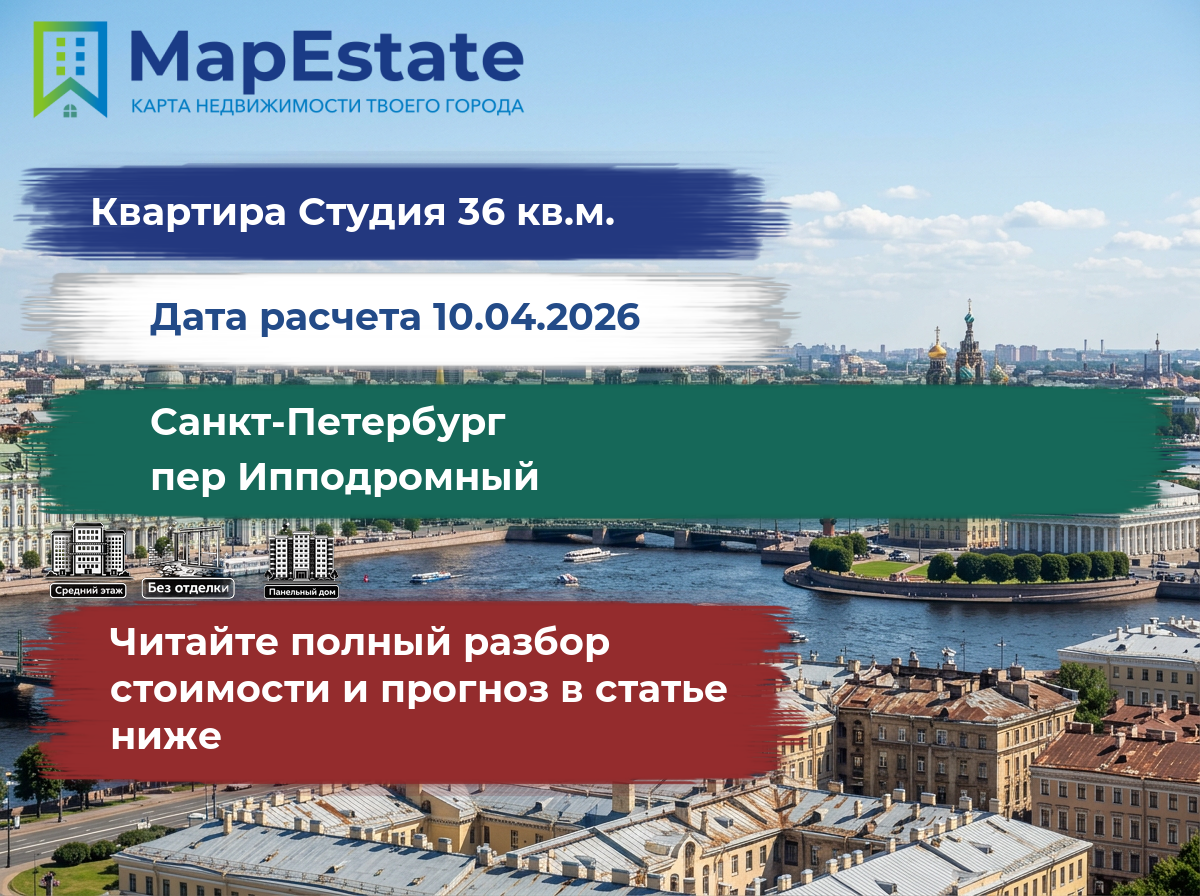 Сколько стоит квартира 36 м² в санкт-петербург, пер ипподромный?