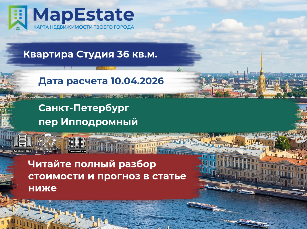 Сколько стоит квартира 36 м² в санкт-петербург, пер ипподромный?