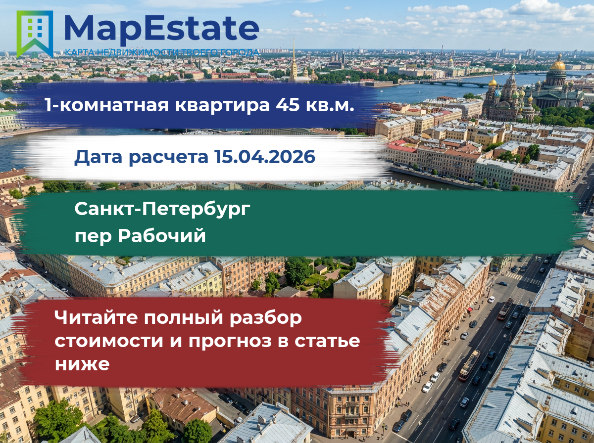 Квартира площадью 45 м² формата 1-комнатная на санкт-петербург, пер рабочий относится к распространённым объектам жилой недвижимости.