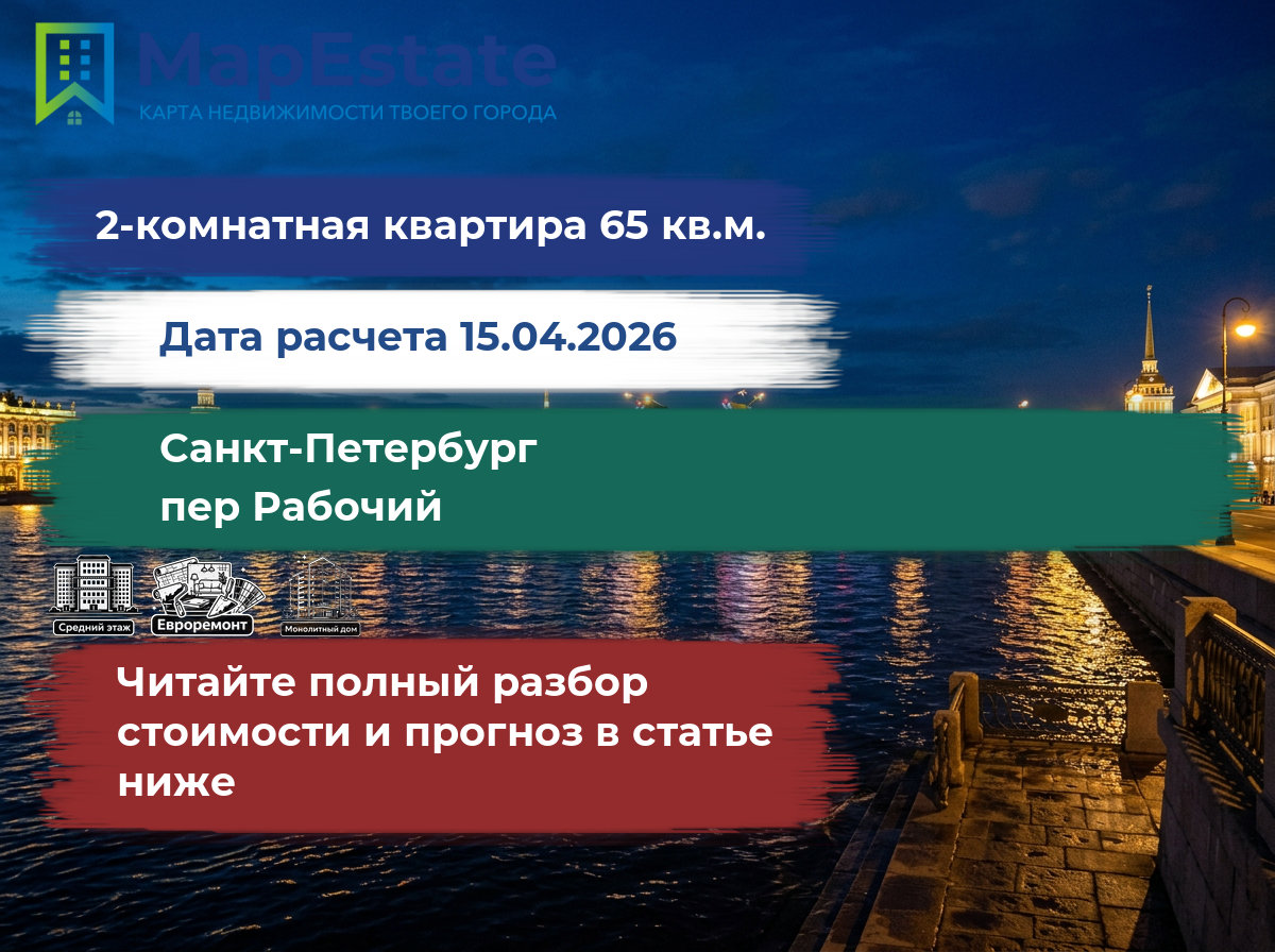 Сколько стоит квартира 65 м² в санкт-петербург, пер рабочий?