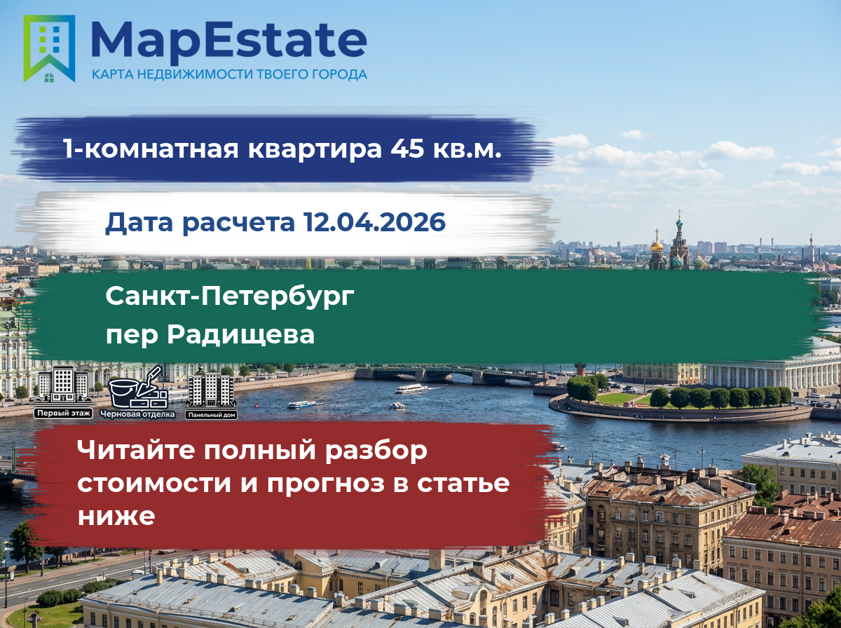 Сколько стоит квартира 45 м² в санкт-петербург, пер радищева?