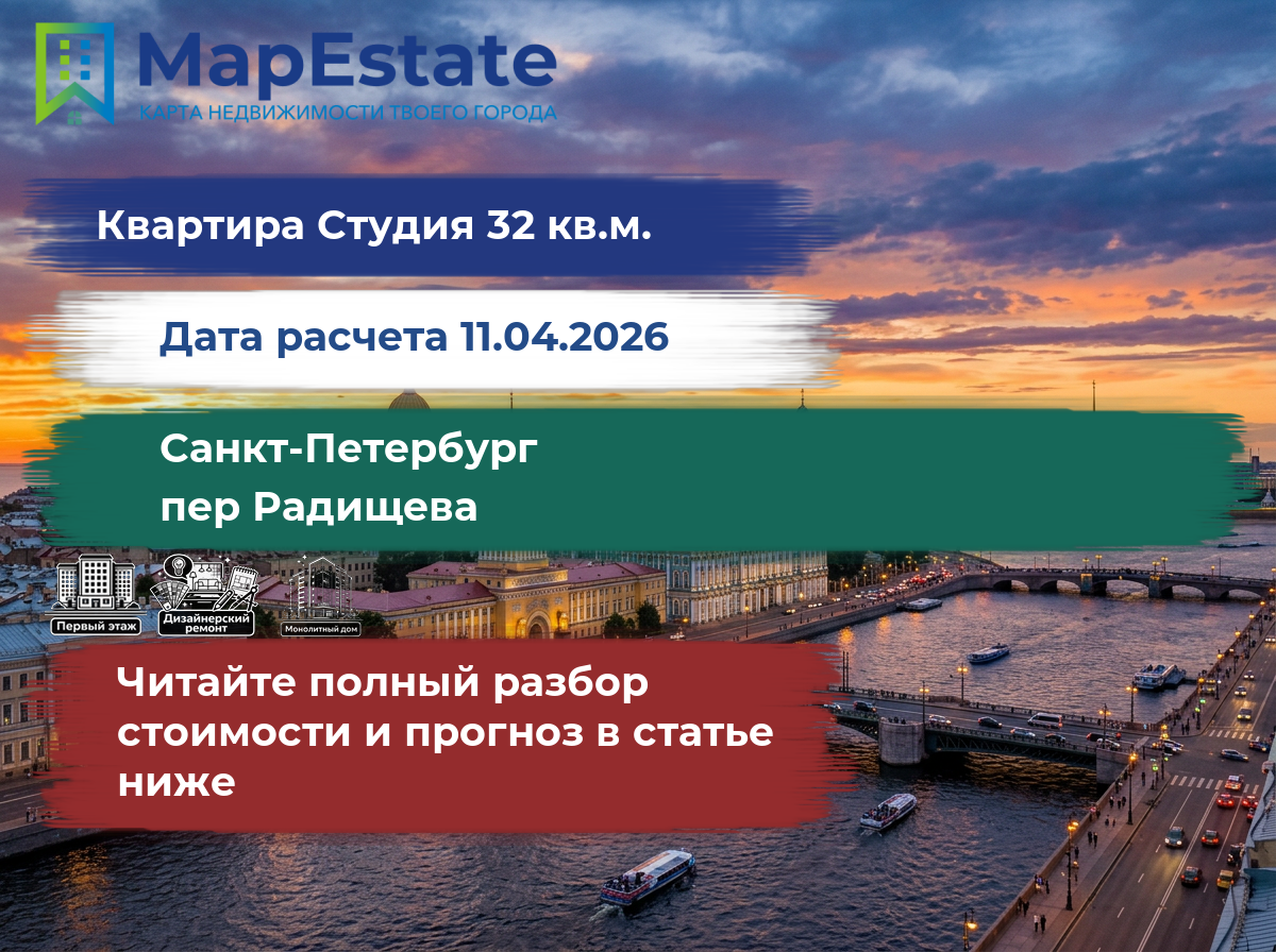 Сколько стоит квартира 32 м² в санкт-петербург, пер радищева?