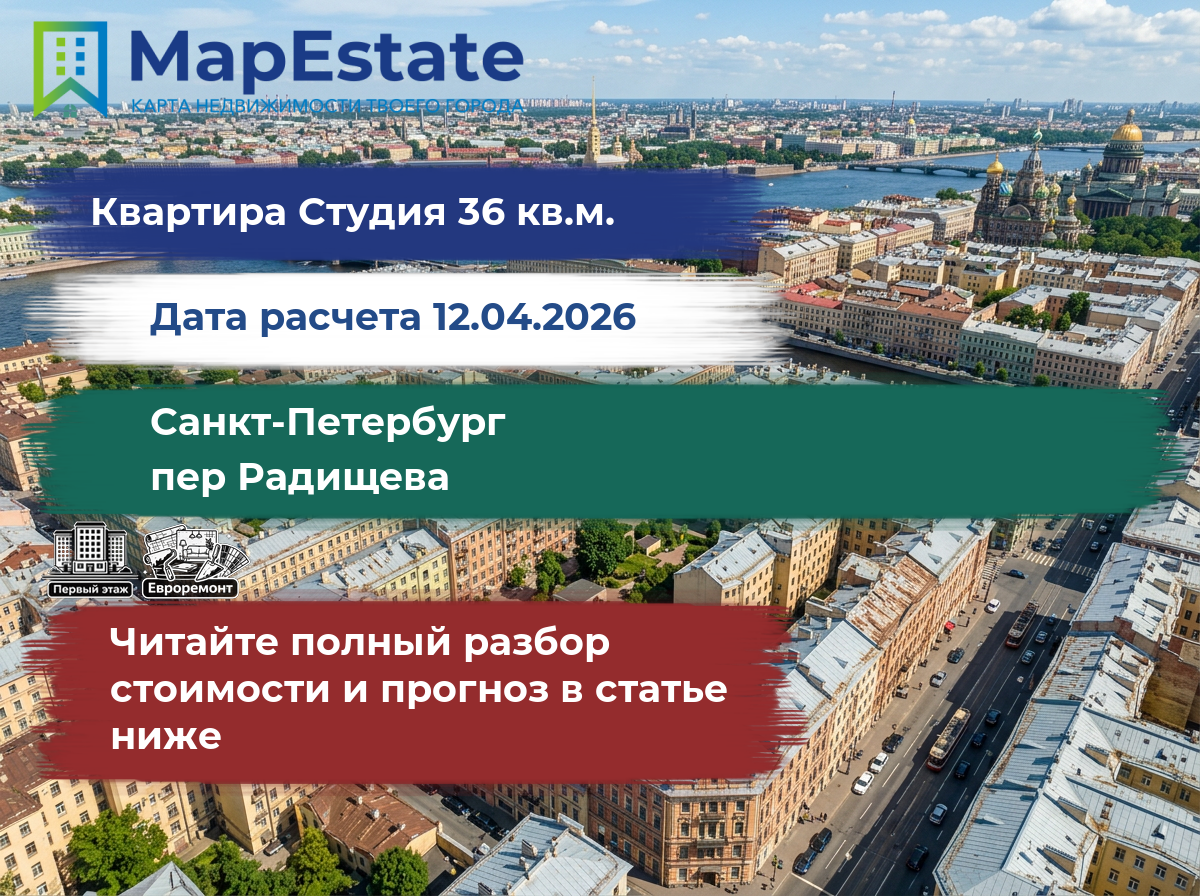 Сколько стоит квартира 36 м² в санкт-петербург, пер радищева?