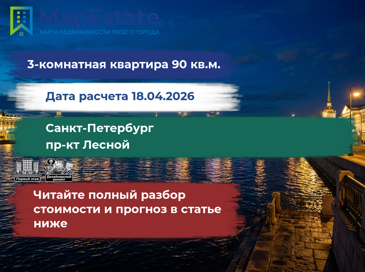 Сколько стоит квартира 90 м² в санкт-петербург, пр-кт лесной?