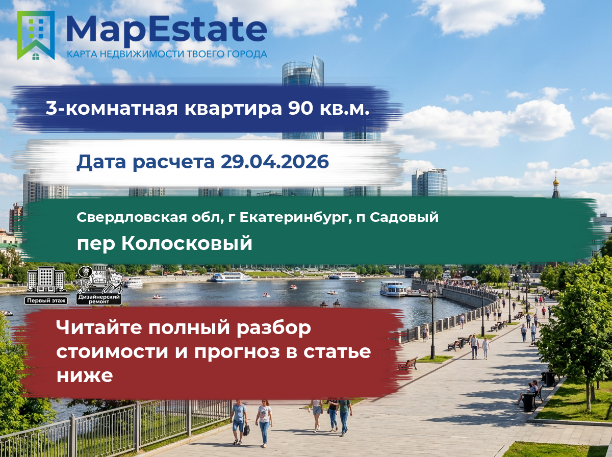 Сколько стоит квартира 90 м² в свердловская обл, г екатеринбург, п садовый, пер колосковый?