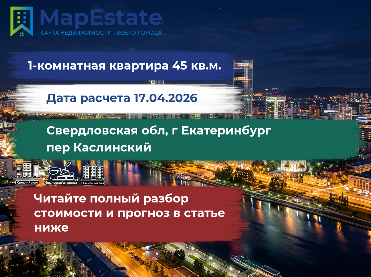 Сколько стоит квартира 45 м² в свердловская обл, г екатеринбург, пер каслинский?