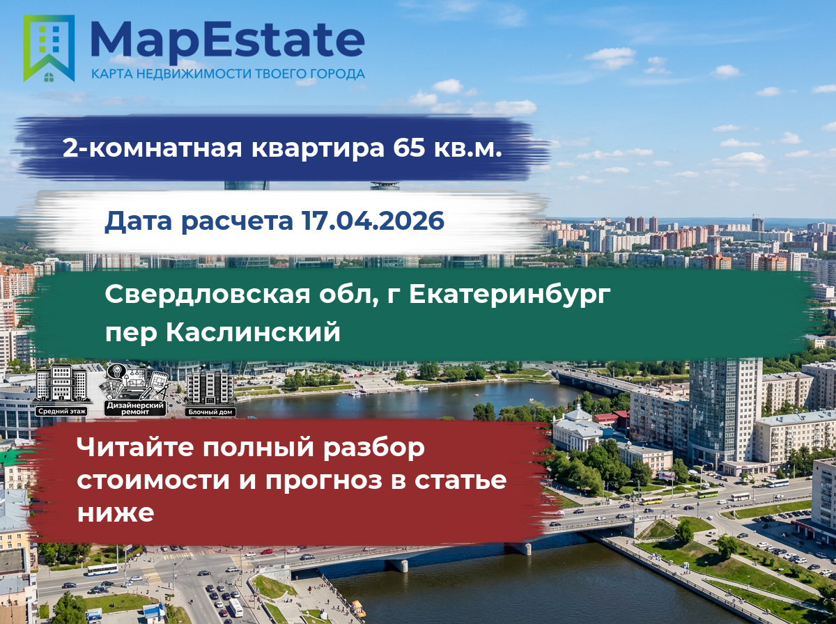 Сколько стоит квартира 65 м² в свердловская обл, г екатеринбург, пер каслинский?