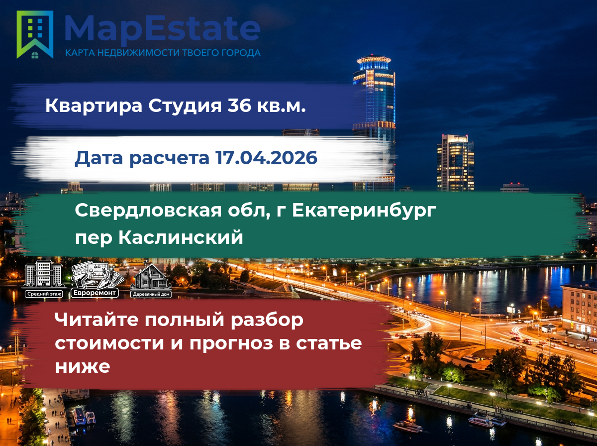 Сколько стоит квартира 36 м² в свердловская обл, г екатеринбург, пер каслинский?