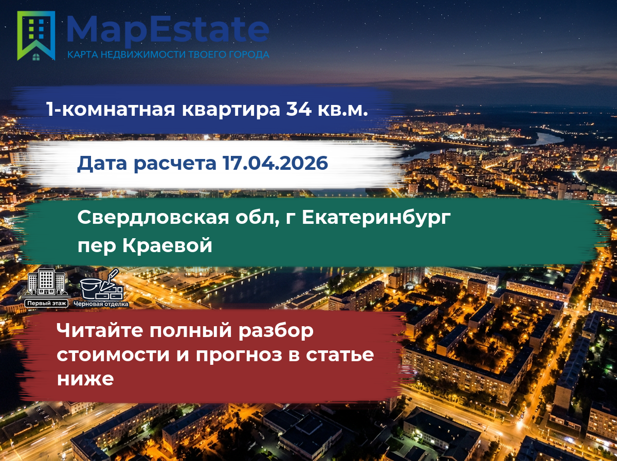 Сколько стоит квартира 34 м² в свердловская обл, г екатеринбург, пер краевой?