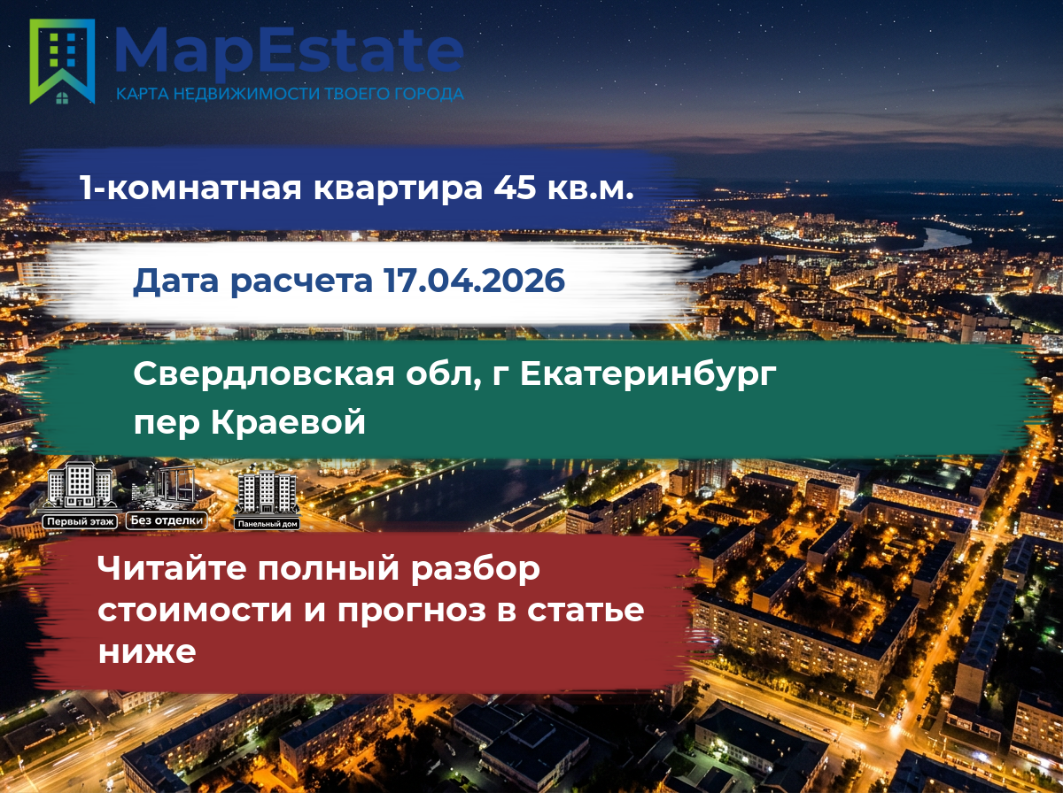 Сколько стоит квартира 45 м² в свердловская обл, г екатеринбург, пер краевой?