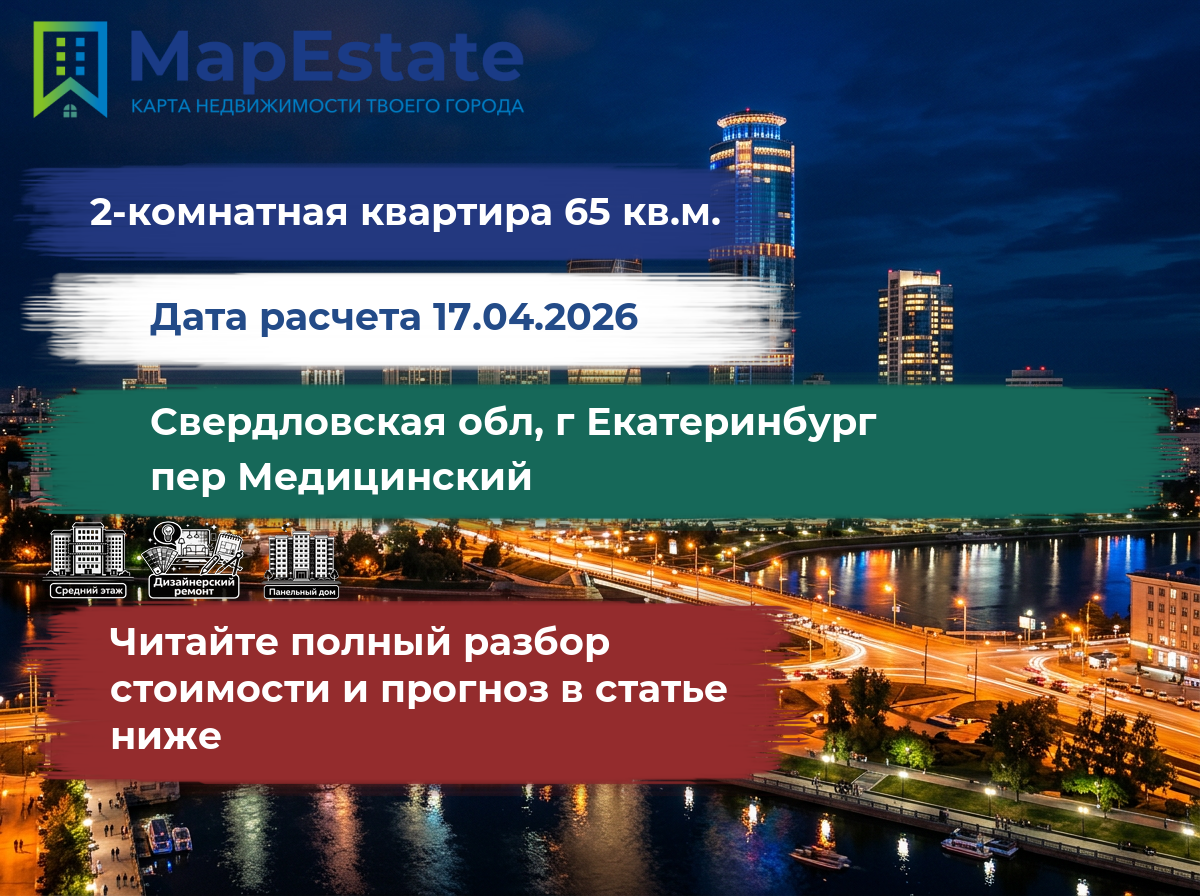 Сколько стоит квартира 65 м² в свердловская обл, г екатеринбург, пер медицинский?