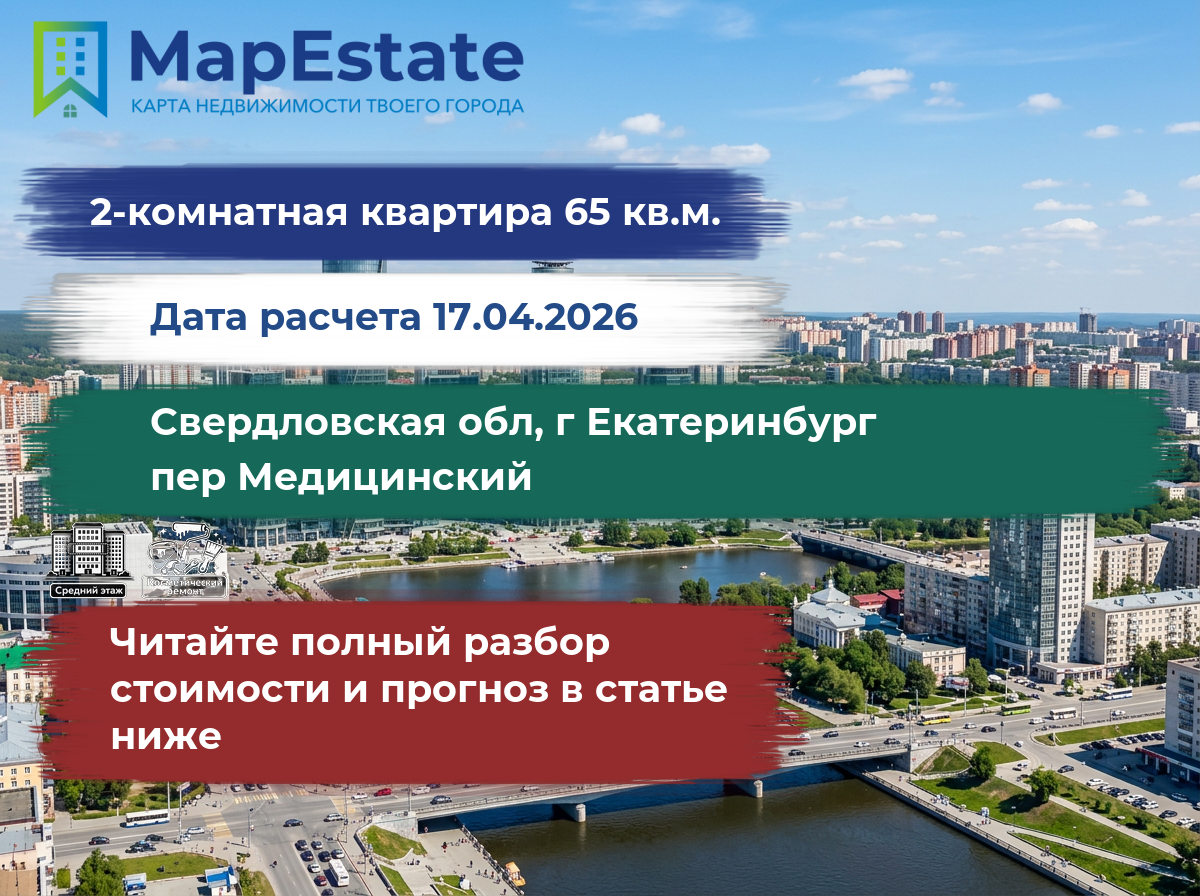 Сколько стоит квартира 65 м² в свердловская обл, г екатеринбург, пер медицинский?