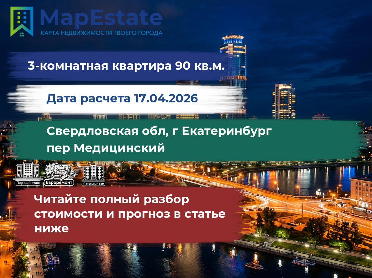 Сколько стоит квартира 90 м² в свердловская обл, г екатеринбург, пер медицинский?