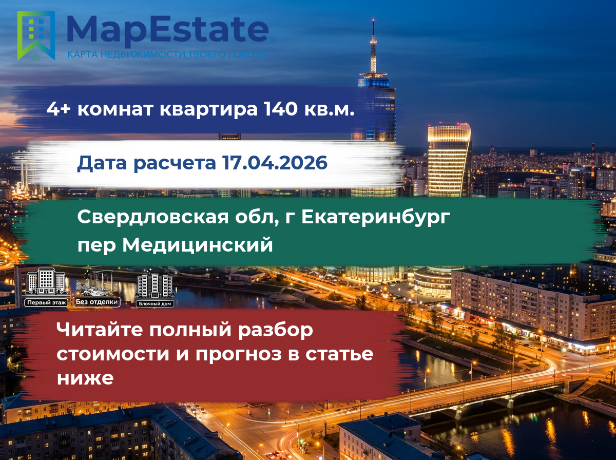 Сколько стоит квартира 140 м² в свердловская обл, г екатеринбург, пер медицинский?