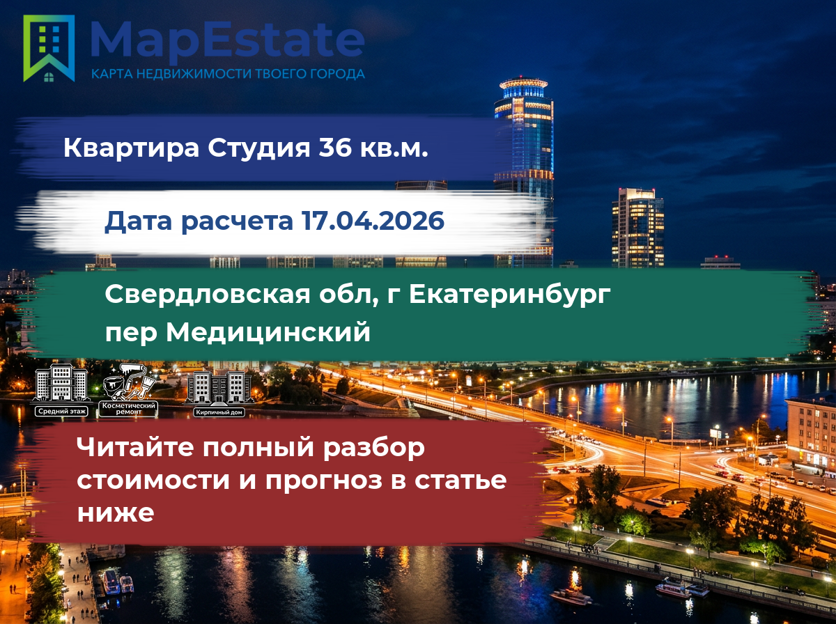 Сколько стоит квартира 36 м² в свердловская обл, г екатеринбург, пер медицинский?