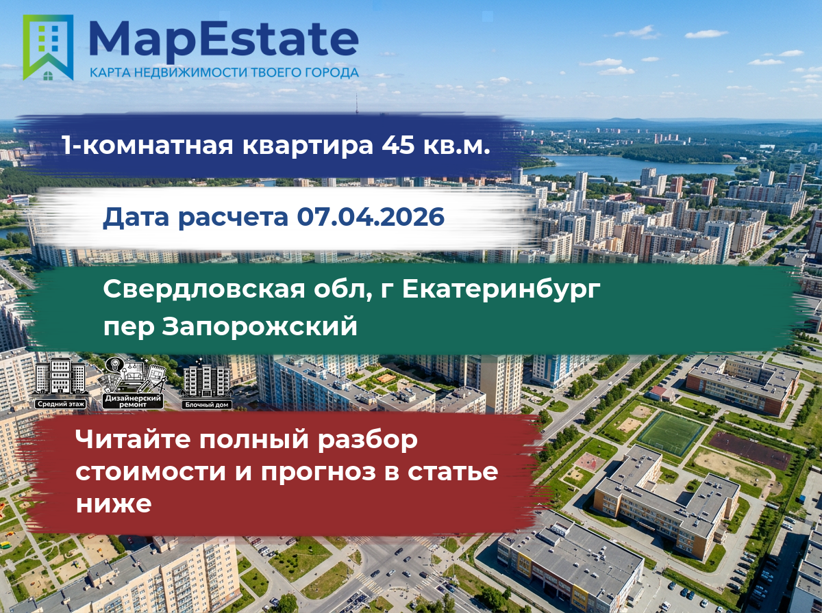 Сколько стоит квартира 45 м² в свердловская обл, г екатеринбург, пер запорожский?