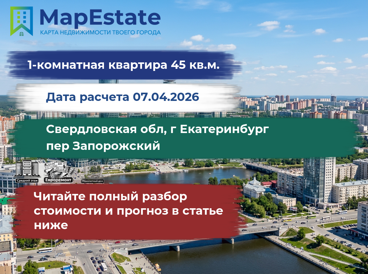 Сколько стоит квартира 45 м² в свердловская обл, г екатеринбург, пер запорожский?