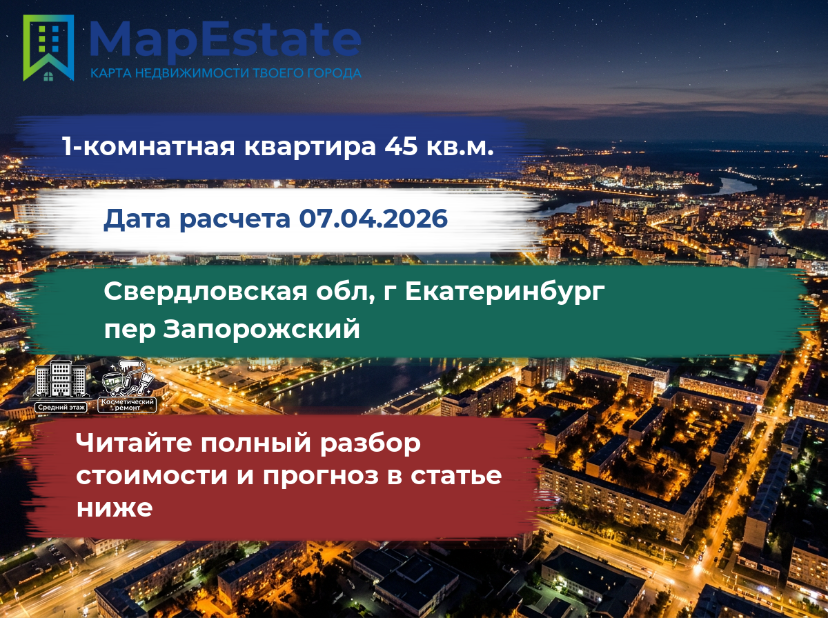 Сколько стоит квартира 45 м² в свердловская обл, г екатеринбург, пер запорожский?
