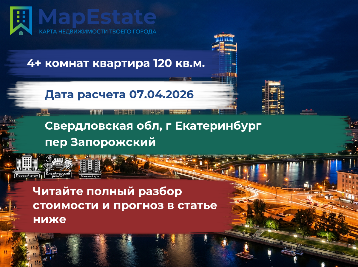 Сколько стоит квартира 120 м² в свердловская обл, г екатеринбург, пер запорожский?