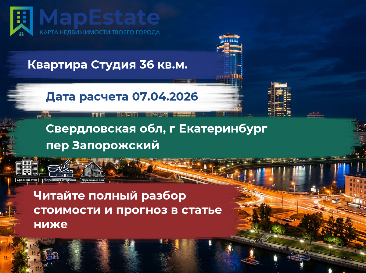 Сколько стоит квартира 36 м² в свердловская обл, г екатеринбург, пер запорожский?