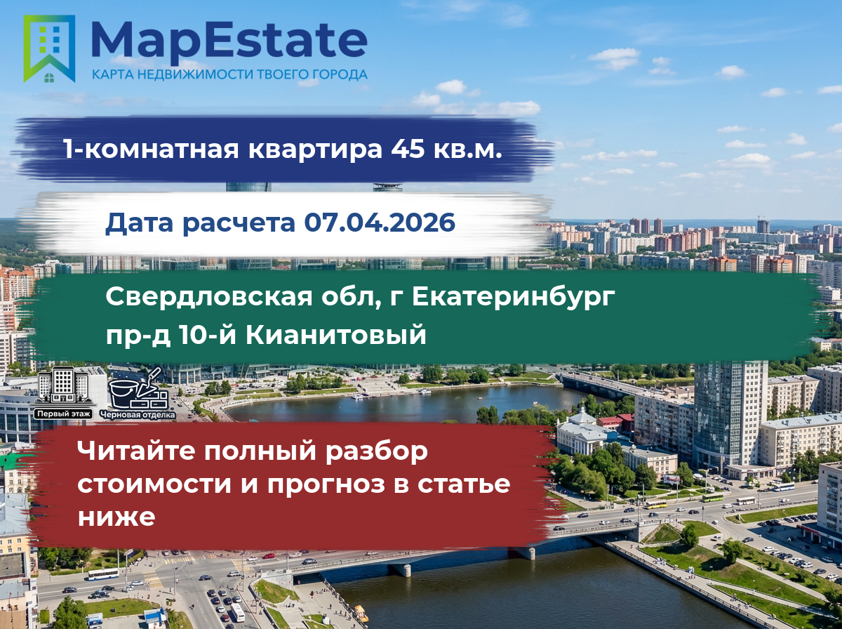Сколько стоит квартира 45 м² в свердловская обл, г екатеринбург, пр-д 10-й кианитовый?