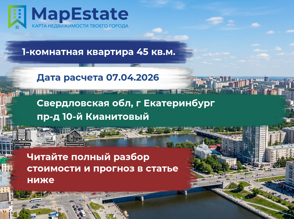 Сколько стоит квартира 45 м² в свердловская обл, г екатеринбург, пр-д 10-й кианитовый?