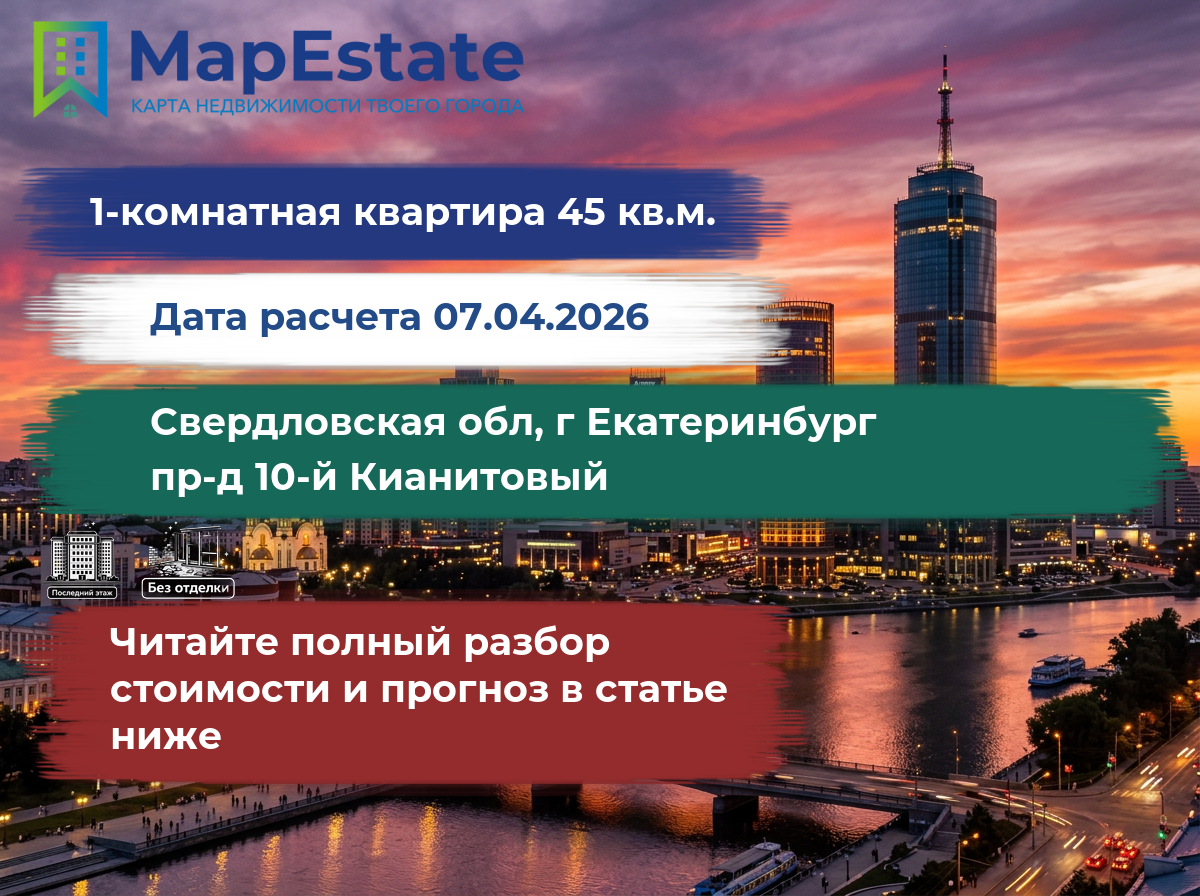 Сколько стоит квартира 45 м² в свердловская обл, г екатеринбург, пр-д 10-й кианитовый?