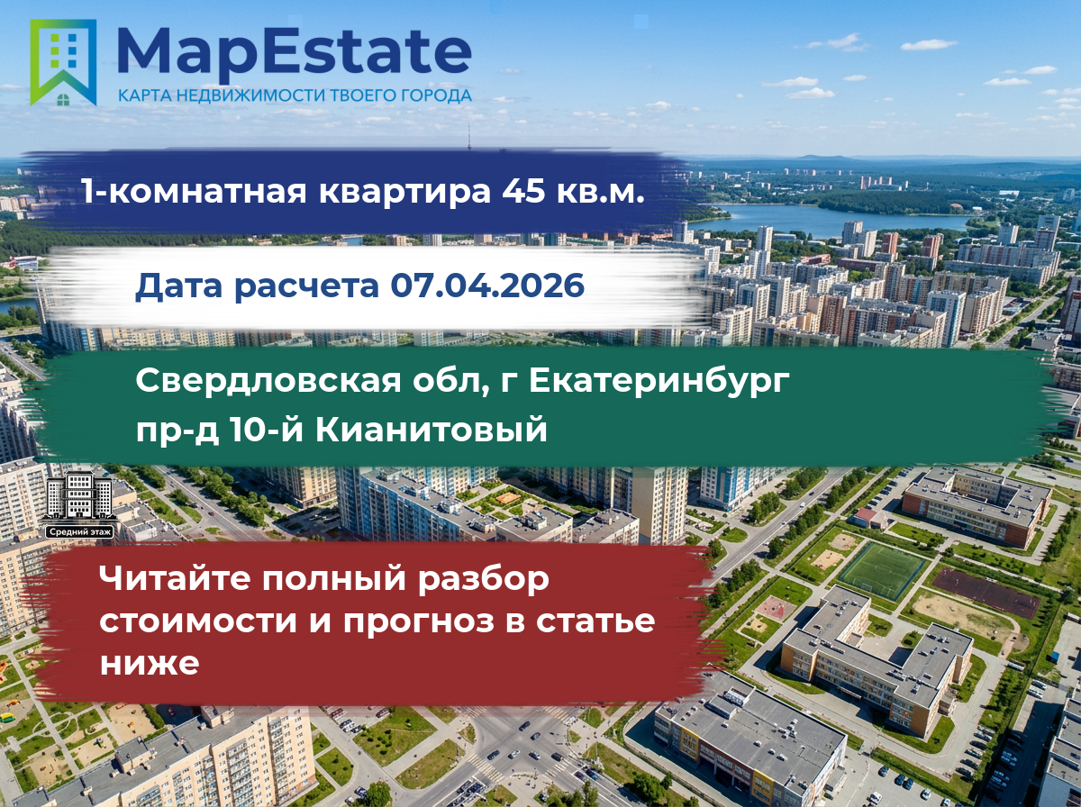 Сколько стоит квартира 45 м² в свердловская обл, г екатеринбург, пр-д 10-й кианитовый?