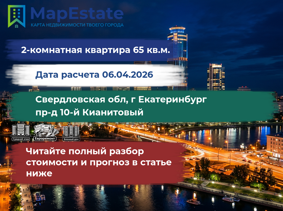 Сколько стоит квартира 65 м² в свердловская обл, г екатеринбург, пр-д 10-й кианитовый?