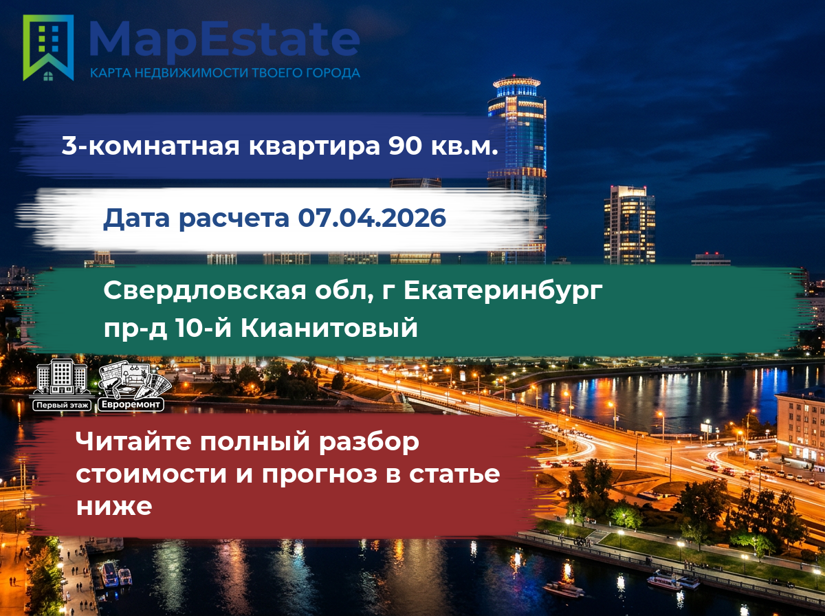Сколько стоит квартира 90 м² в свердловская обл, г екатеринбург, пр-д 10-й кианитовый?