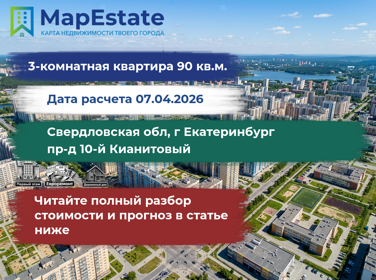 Сколько стоит квартира 90 м² в свердловская обл, г екатеринбург, пр-д 10-й кианитовый?