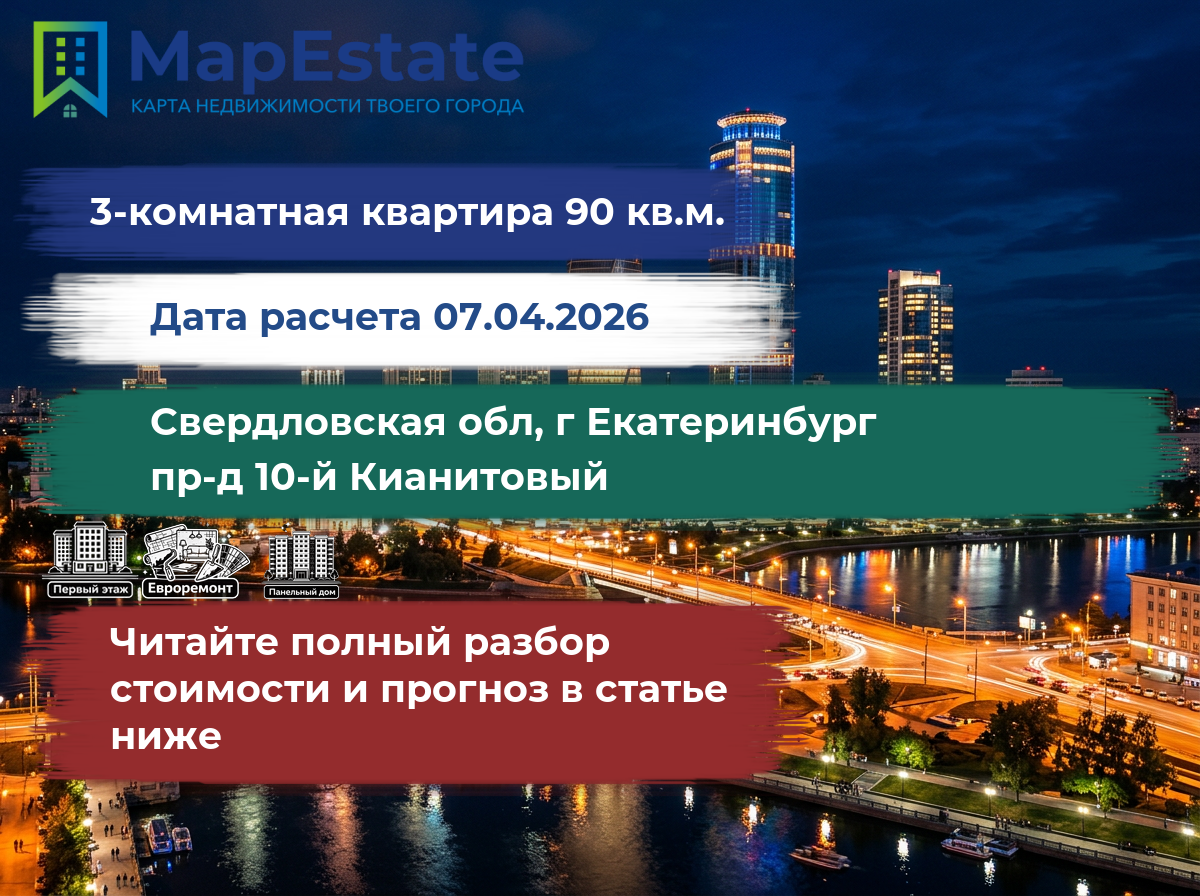 Сколько стоит квартира 90 м² в свердловская обл, г екатеринбург, пр-д 10-й кианитовый?