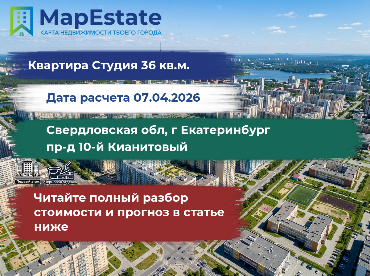 Сколько стоит квартира 36 м² в свердловская обл, г екатеринбург, пр-д 10-й кианитовый?