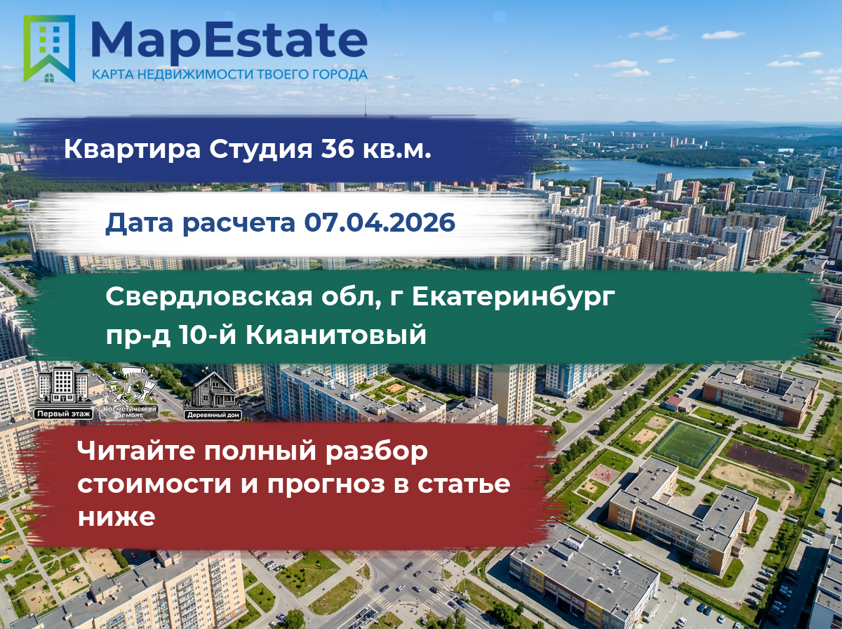 Сколько стоит квартира 36 м² в свердловская обл, г екатеринбург, пр-д 10-й кианитовый?
